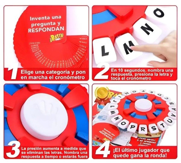 Con cartas que proponen categorías para que los jugadores respondan rápidamente, ¡Basta! pone a prueba tu rapidez mental y conocimiento general. Fomenta la socialización y el trabajo en equipo, creando momentos memorables en cada partida.